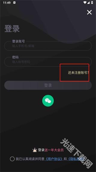 接着进入登录页面,在这个页面里我们点击【还未注册账号】;