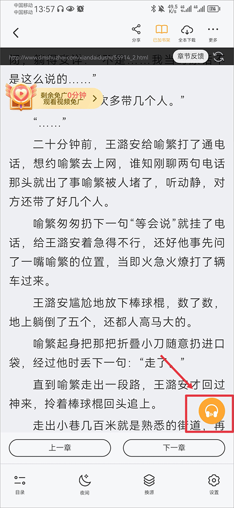 进入小说阅读界面后,轻点屏幕即可唤醒阅读功能,接着点击右下角的听书按钮。