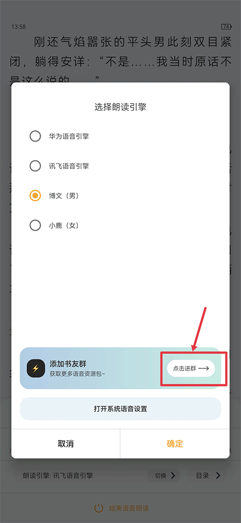 要是对现在的听书语音不太满意,不妨加入书友群来获取更多的语音资源包。