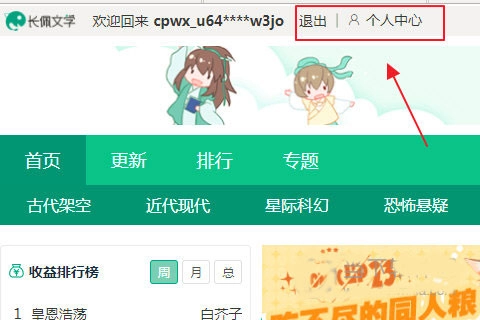 登陆长佩文学,进入首页,找到登陆/注册。