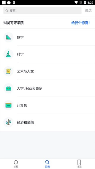 在探索界面里挑选具体的学习科目,像数学、科学、艺术与人文、计算机、经济和金融之类的。