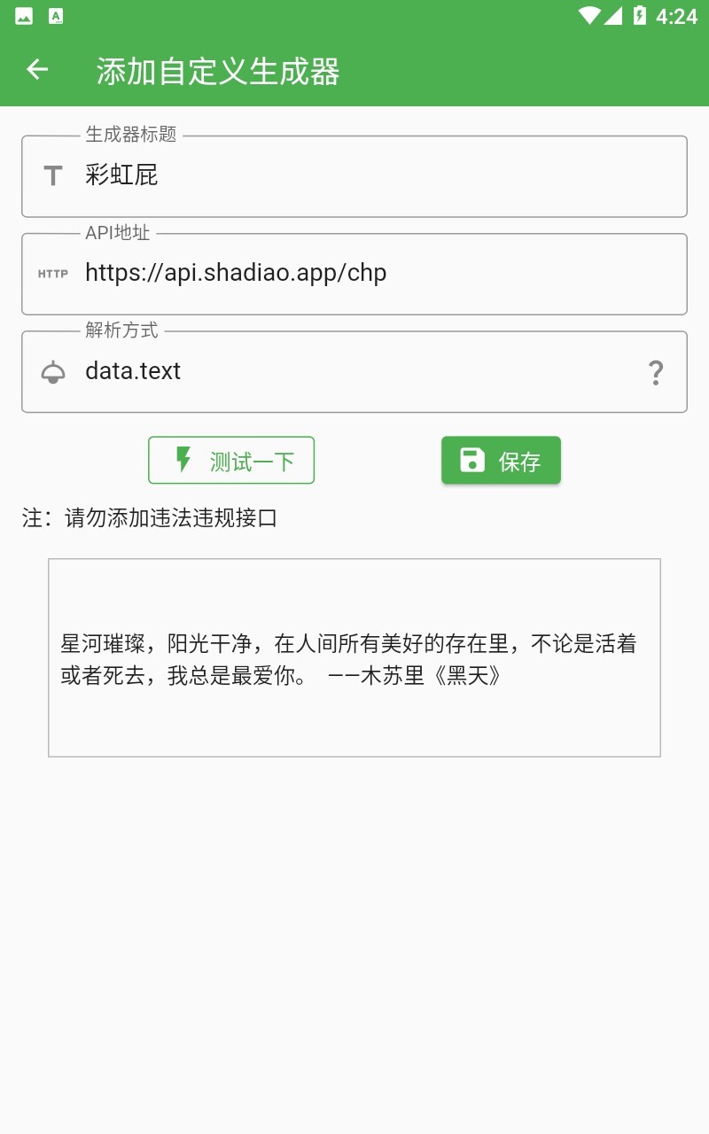 也可以自定义生存器,输入标题、地址和解析方式