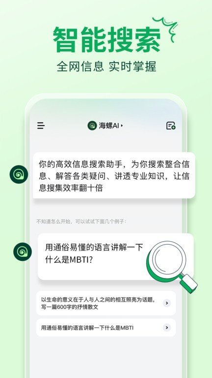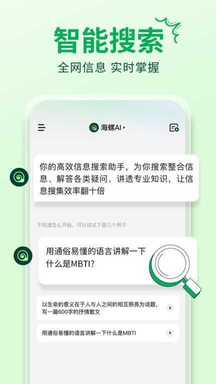 不管是文案撰写、解答疑问、查找资料还是长文归纳,海螺问问都可以为你提供帮助。