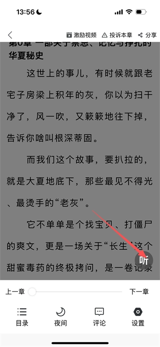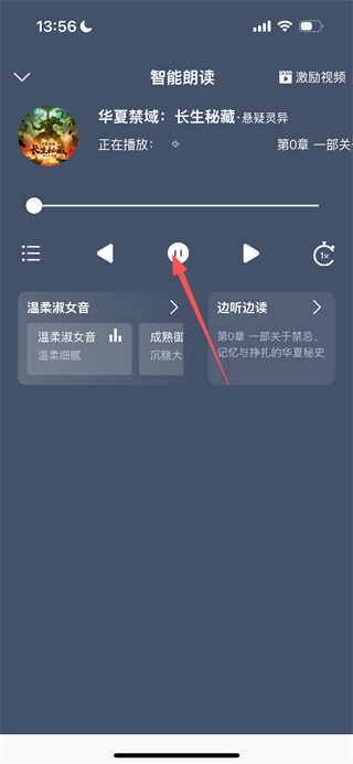 在阅读界面,点击右侧的听按钮,进入听书页面。