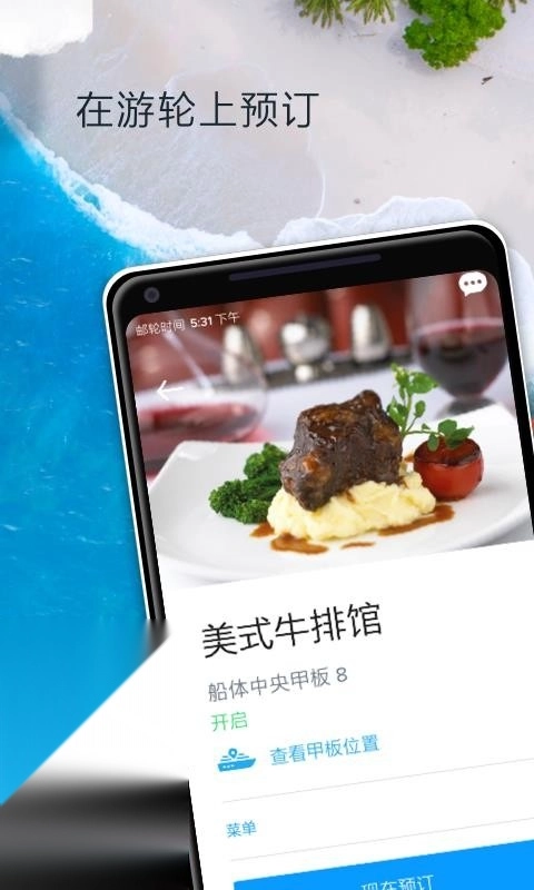 可以查看船上餐厅的菜单并预约特色餐饮的座位,也能提前预订水疗服务和特色娱乐项目,从而省去现场排队的麻烦。