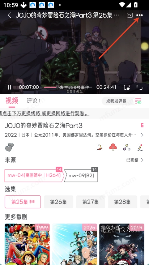 打开喵物次元应用,找到你感兴趣的动漫并点击,即可进入该动漫的播放界面。