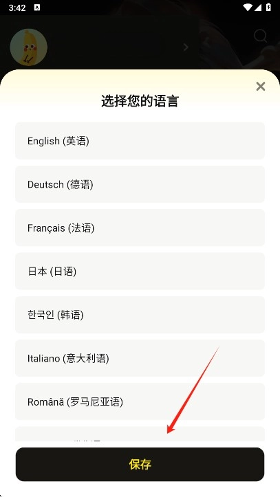 选择你想使用的语言,点击保存按钮,语言切换操作就完成了。