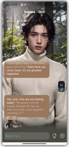 支持文字与语音的双向互动,你既可以输入文字,也能按住按钮说话,AI会用自然流畅的语音给予回应。搭配精美的动态聊天背景和角色立绘,让每一次对话都如同在专属场景中约会一般。