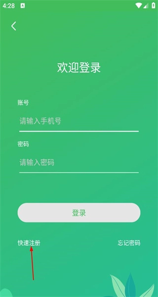 进入登录界面后,用户点击快速注册选项,就能进入账号注册的信息填写页面。