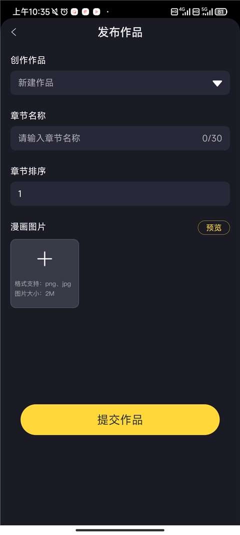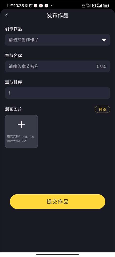 请输入作品名称、漫画类型、漫画封面、简介等相关信息。