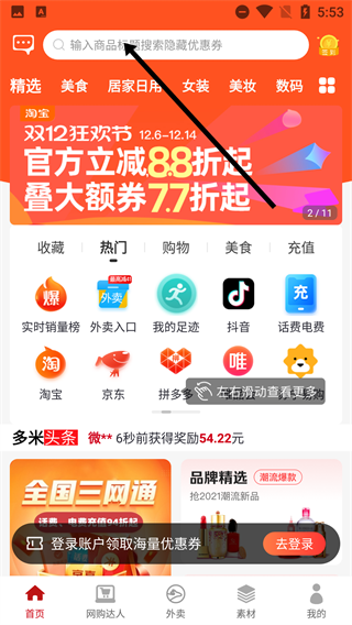 点击页面顶部的搜索框,进入搜索界面后,输入商品标题就能查找对应的隐藏优惠券了。