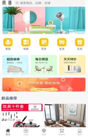 熊推:专门从事家装产品销售的服务平台,这里拥有超级齐全的家装产品,想要购买什么都能直接在线购物,详细的分类专区让你轻轻松松即可找到自己想要的产品,多种优惠的活动让你在购物中享受优惠的价格,专业的配送上门服务还是相当贴心的,每日精选优质好货为你推荐懂你所爱!喜欢的话就来本站来下载体验吧。