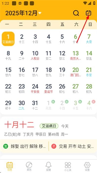 在日历的首页界面,点击页面右上角的功能图标,即可开展日历相关的设置操作。