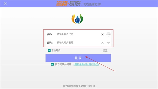 进入登录界面后,依次填写“代码”和“密码”,勾选“记住用户”选项,最后点击【登录】按钮即可。