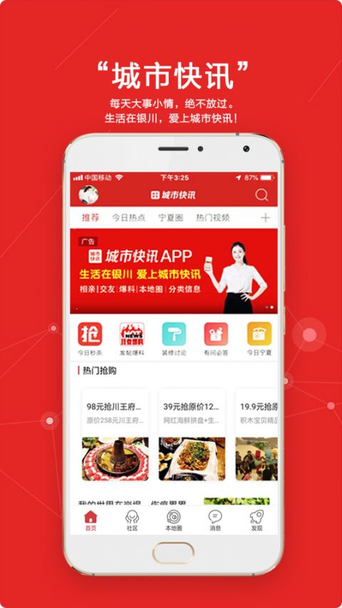 城市快讯是一款专门给宁夏当地的人民打造的新闻资讯软件,在这里每天都会不断的更新各种各样的宁夏当地的实事新闻和资讯,用户们可以选择自己感兴趣的进行阅读和查看,其中还有很多的生活上的服务功能,能够帮助你解决掉很多生活上的问题。对这款线上查看新闻的软件感兴趣的朋友,你还在等什么,赶紧下载体验一下吧。