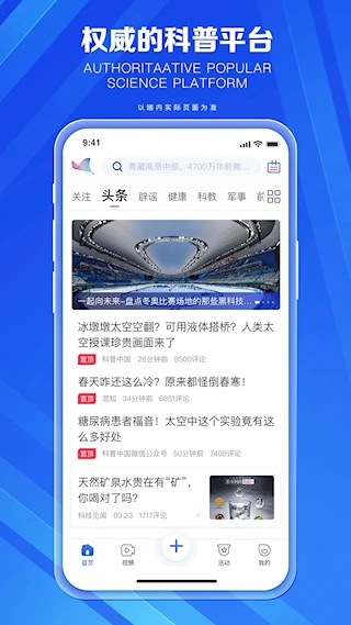1、 第一步是获取并打开科普中国应用,接着在应用的主界面里挑选想要转发的文章内容。