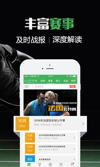 3. 赛事报名:通过线上渠道报名参加各类羽毛球赛事活动,轻松便捷地投身羽毛球运动。