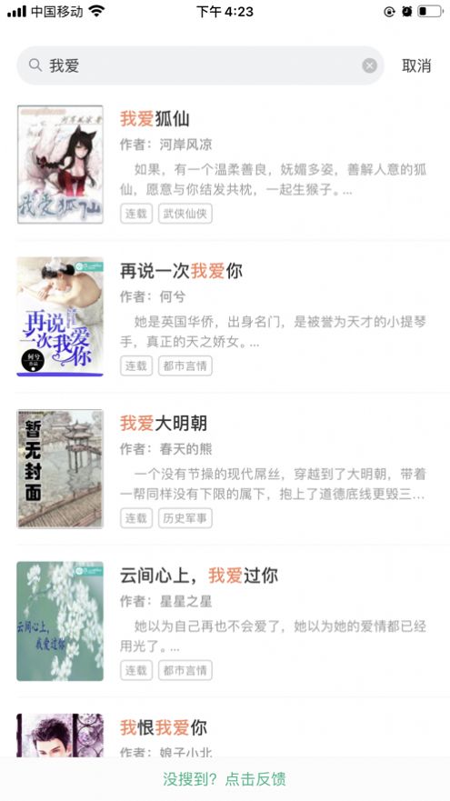 2、平台进行小说关键词搜索,就可以看到心仪的内容;