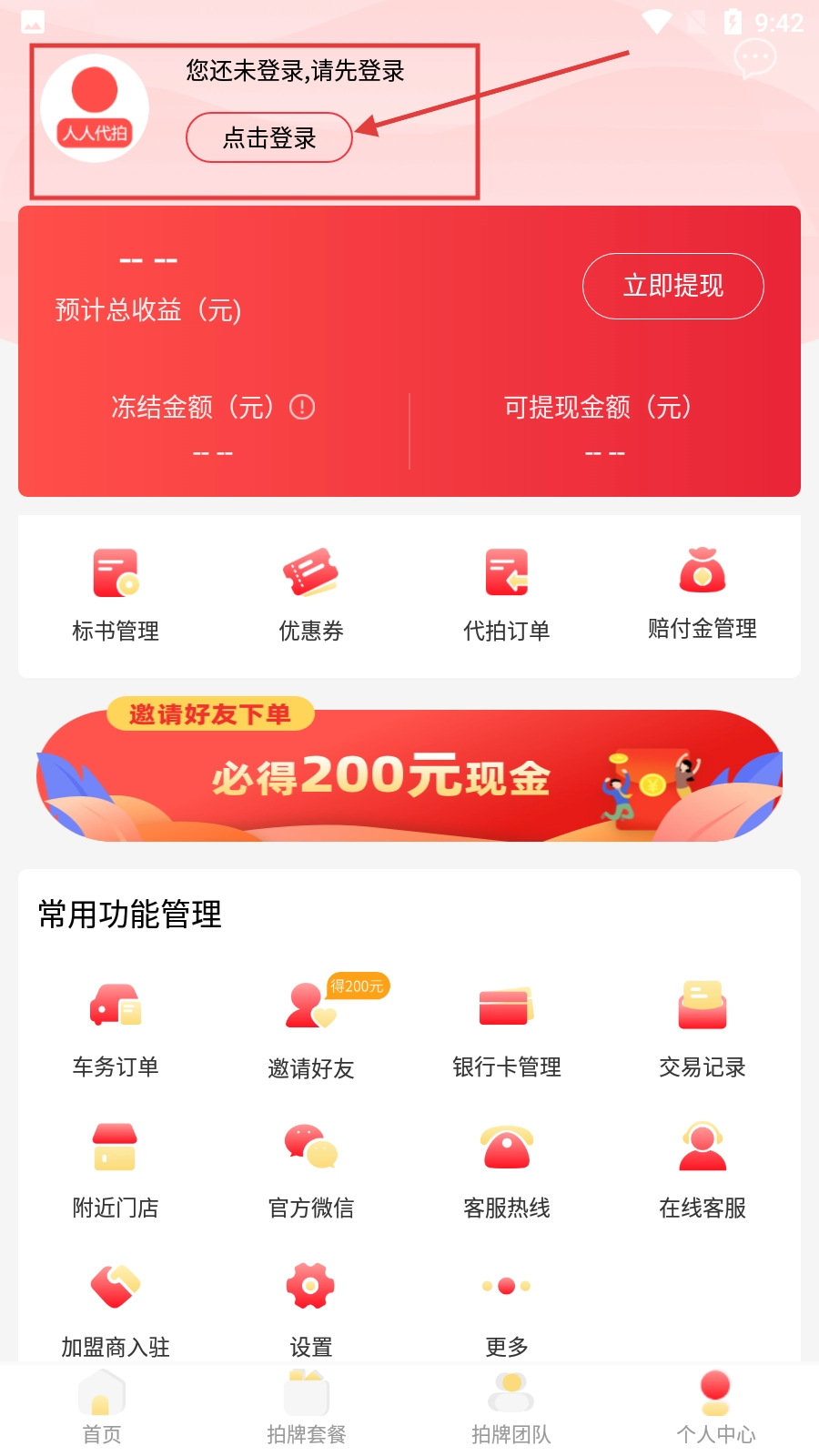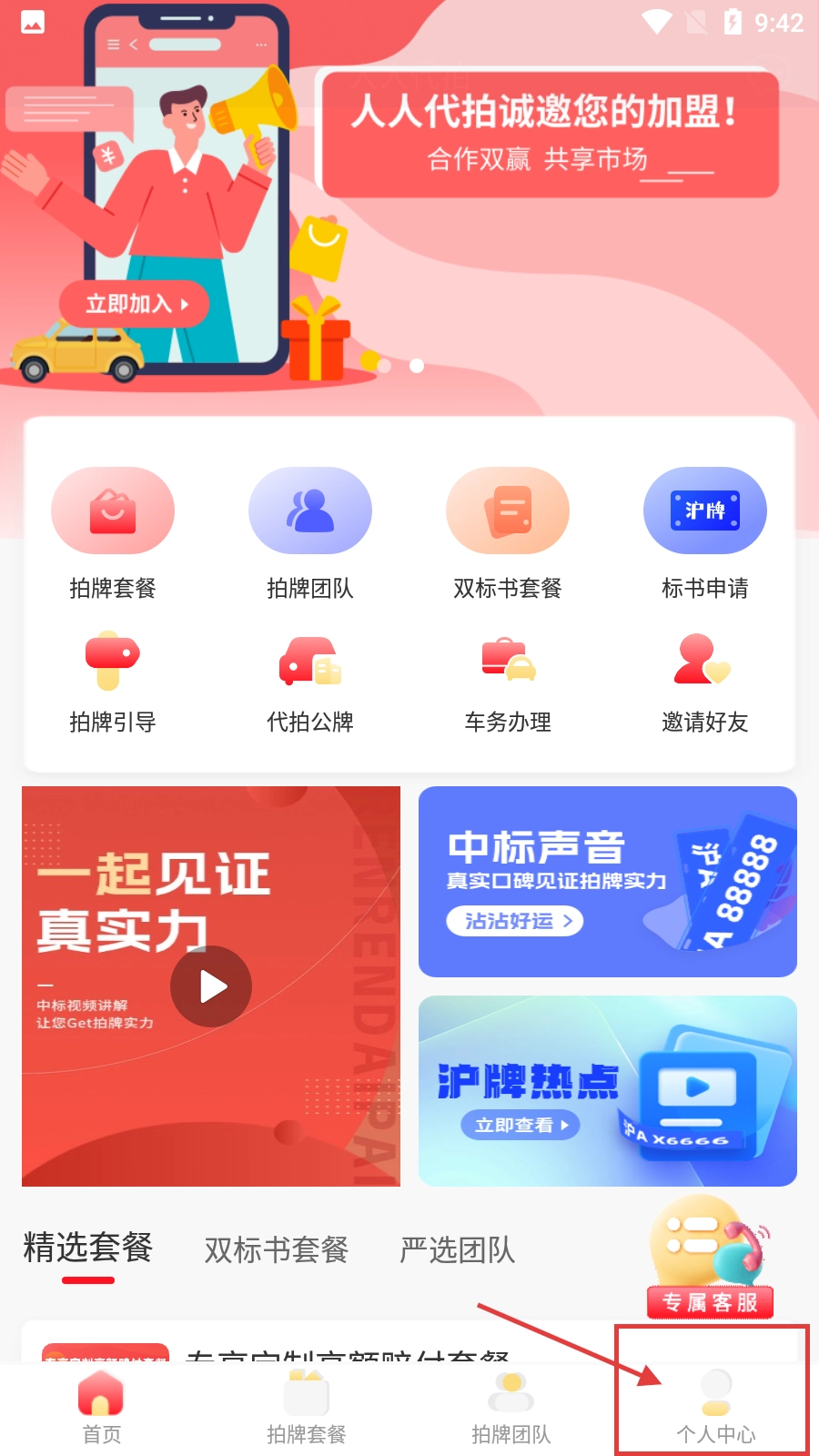 1、在人人代拍首页,点击右下角的【个人中心】按钮,即可进入个人中心页面。
