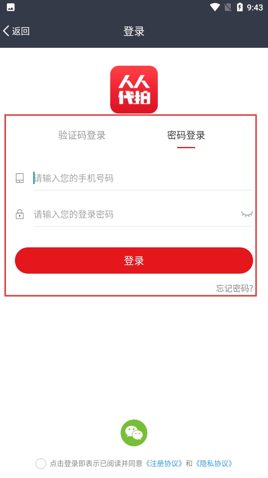 4、您也可以选择密码登录的方式,只需输入手机号和对应的密码,就能完成登录流程。