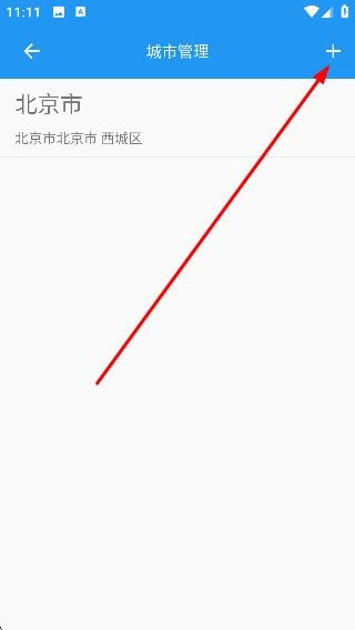2、在城市管理界面点击右上角的【+】号,即可进入添加城市的页面。