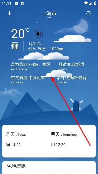 2、支持查询未来15天的天气预报,以及24小时内的天气变化情况;同时还会同步呈现空气质量指数、空气污染指数、PM2.5数值、风力风向、湿度温度等多维度的气象相关数据。