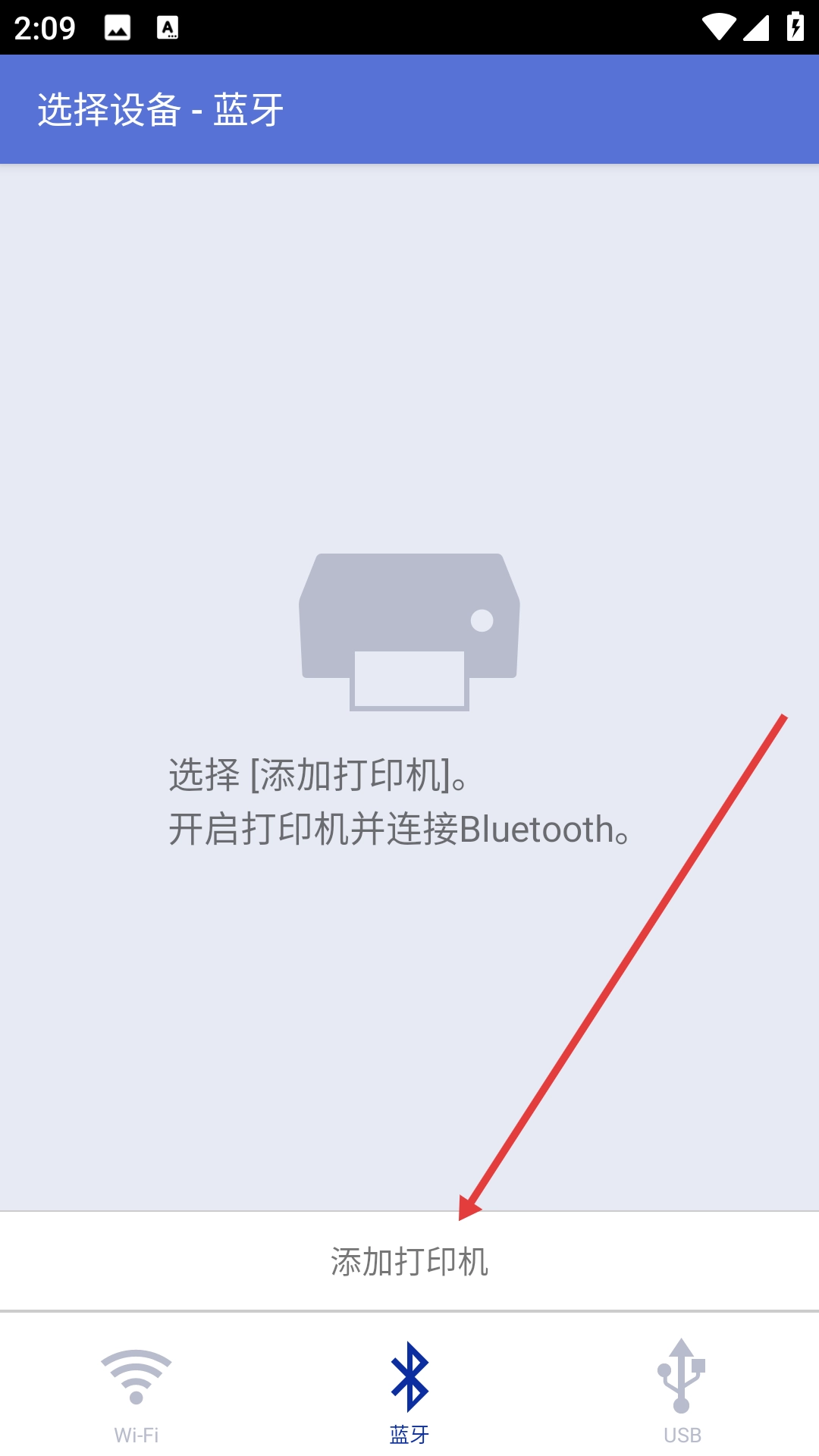 3、进入蓝牙设备选择页面后,点击“添加打印机”选项,为添加蓝牙打印机做好准备。