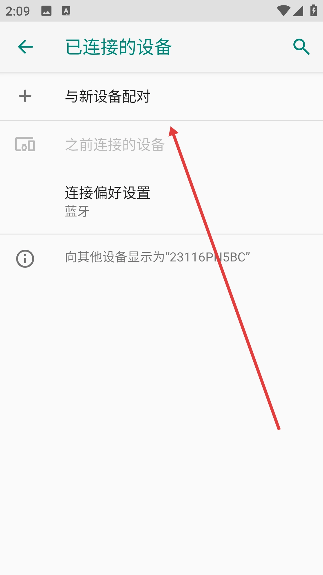 4、在手机的已连接设备页面点击“与新设备配对”,启动打印机的配对流程。