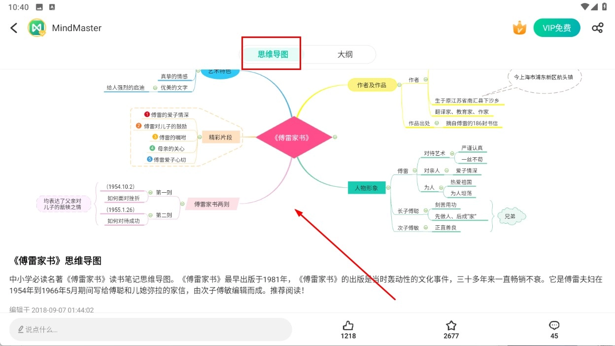 进入详情页后,就能查看《傅雷家书》在【思维导图-视图模式】下的内容结构。