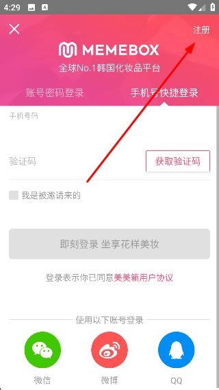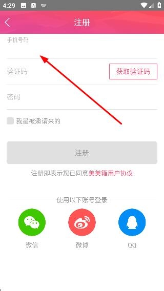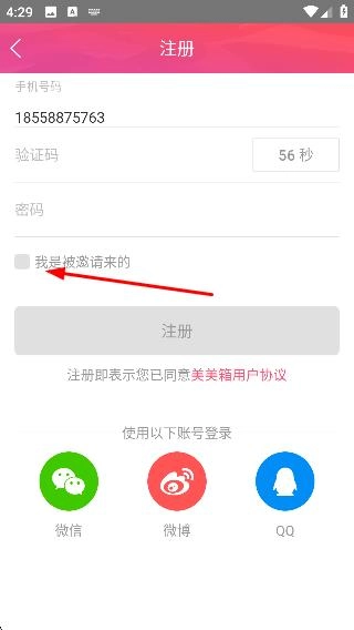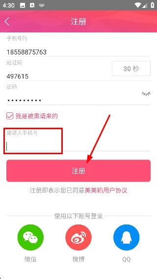 4、把所有信息都填写完毕后,点击【注册】按钮,完成美美箱账号的注册流程,这样就能享受平台提供的美妆服务了。