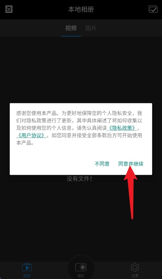 1、初次打开应用时,需阅读隐私政策和用户协议,点击“同意并继续”按钮方可继续使用应用。
