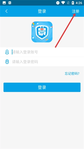 3、在登录页面点击右上角的【注册】按钮,即可进入账户注册页面。
