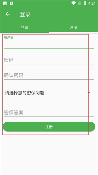 4、进入注册页面后,按顺序填写用户名、密码、密保问题和对应的答案,仔细核对确保所有信息准确无误,然后点击【注册】按钮,就能顺利完成账号的创建流程。