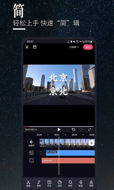 支持对已拍摄的视频进行剪辑、裁剪、合并或拆分操作,同时允许用户添加音乐、字幕、滤镜等丰富效果。