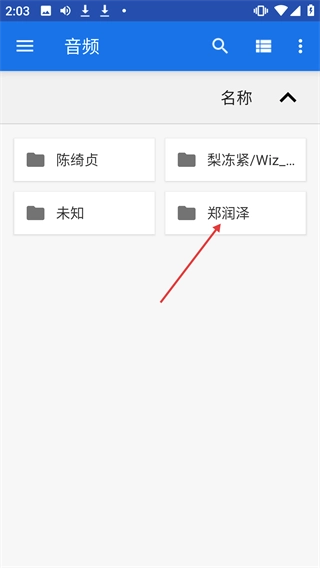 3、进入音频页面后,找到并点击【郑润泽】文件夹,即可进入该文件夹。