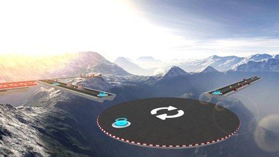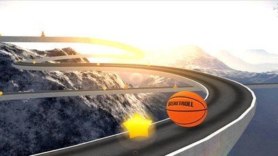在高空平台滚动球,合理利用反弹的蹦床,并与对象进行交互。