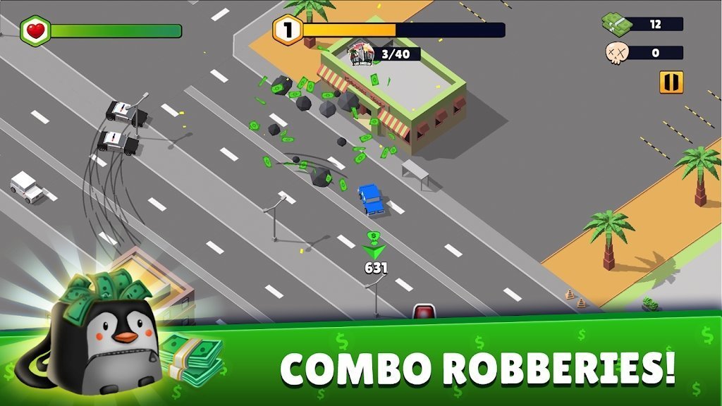 在紧张的警察追逐中,展示你的驾驶技巧,逃离追捕并保持战利品的安全;
