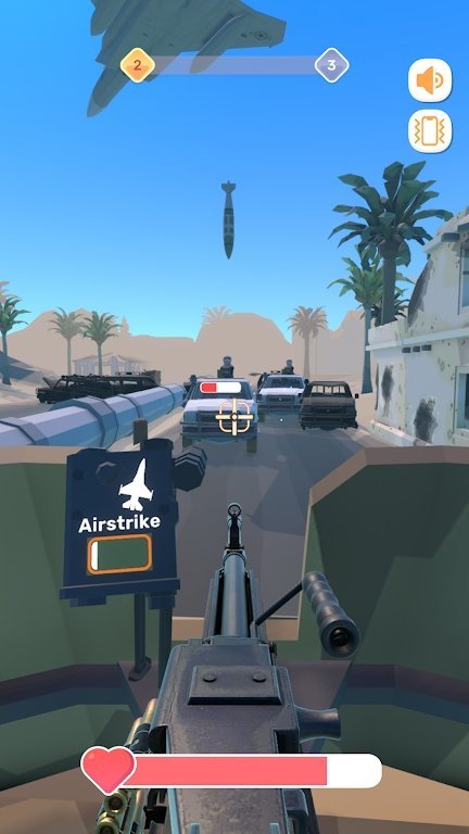 悍马机枪手是一款射击类闯关游戏,在游戏中你将扮演一名悍马机枪手,肩负保护盟军士兵、消灭敌军的重任。同时你需要面对来自不同方向的敌人袭击,需要用你的机枪技巧保护自己和队友。此外游戏中还有各种可爱的角色和酷炫的特效,为你带来不一样的游戏体验。