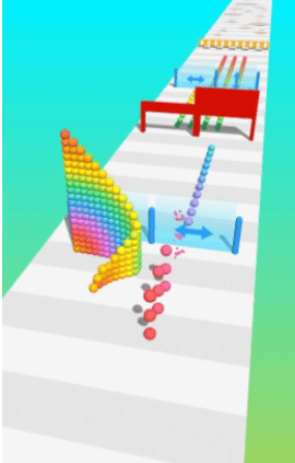 1、玩家控制大量的球在关卡中奔跑,收集更多相同的球,扩大形状。