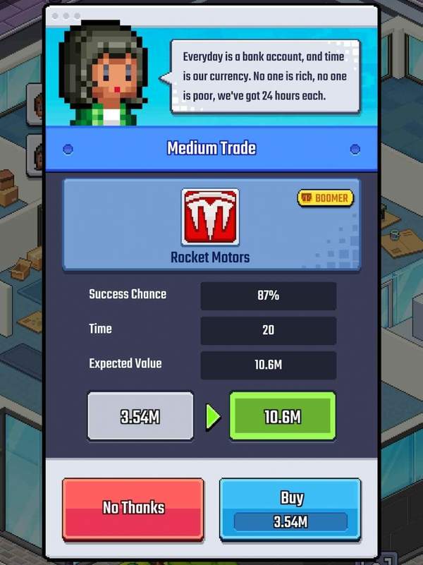 3、公司中重要的决策合同都需要玩家进行签约,通过不断的进行投资,会获得大量的收益。