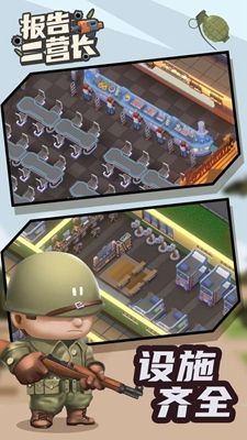报告二营长是一款非常好玩的手机养成经营游戏,在这款游戏当中玩家们要扮演军事训练营的训练官,在这里训练你的士兵来提升他们的战斗力,来帮助玩家们赢得战争,游戏拥有超多的训练游戏玩法,各种的趣味环节给你增添超多的游戏乐趣,还有更多的趣味互动等你前来体验。