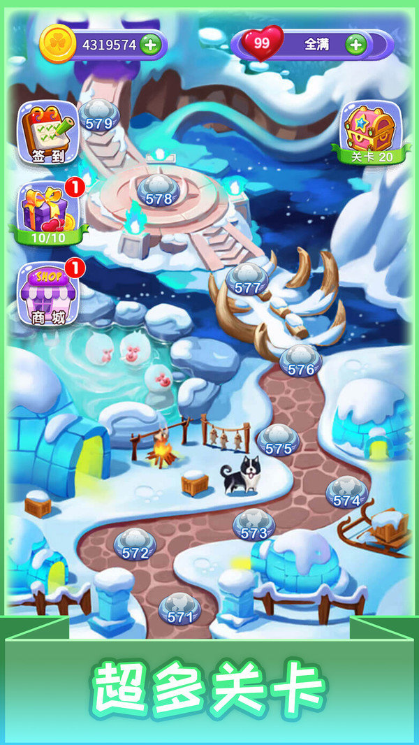 每一关里有超多的泡泡,只需要你射击出相同的泡泡击中并消除就可以。
