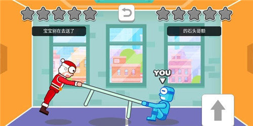 只需要不停地点点点,就能控制手中的小人不断把对手拉向自己,一旦对手越过中线,你就能获得胜利。是的,这就是一场简单的拔河比赛。不过偶尔也可以变得稍微不简单。发生僵局的时候,可以在小人踩到地面上之后突然发力,利用蹬腿的反作用力把对手拉过来一大截。蛮力和巧劲并施,才是每场比赛获胜的关键!