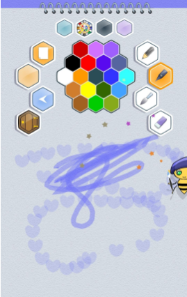 玩家在像六边形状的图形中可以挑选自己喜欢的颜色来绘画作品;