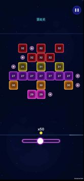 2、玩家需要用一个小球连续击打屏幕上出现的数字块