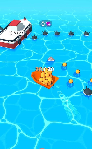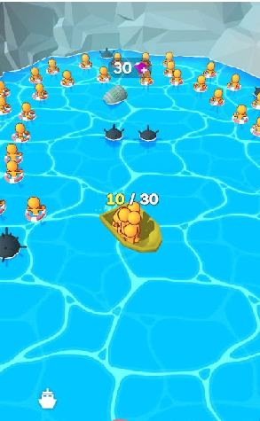 3、玩家可以不断的获取道具,升级船的容量,增加小船拉人的数量;