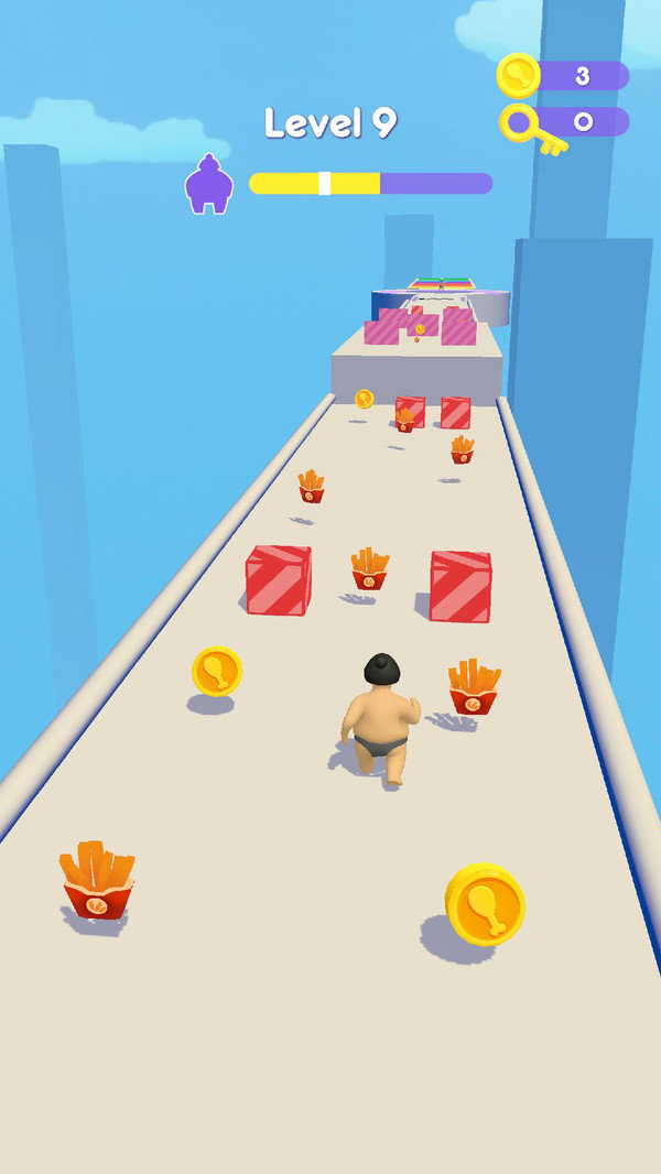 相扑手的美食大冒险是一款充满趣味的休闲闯关冒险跑酷游戏,游戏有着卡通趣味的画面风格,操纵相扑选择开启冒险,如果没有收集到足够的食物,那么就会变瘦哦,那么在抵达终点与对手相扑的时候就不占优势了,因此要一边跑酷一边收集食物,为终点的相扑环节做准备。