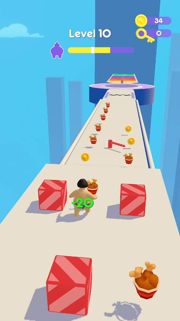 1.跑酷的时候不仅要收集食物和金币,还需要避开所有的危险与障碍,以奋力奔向终点吧;