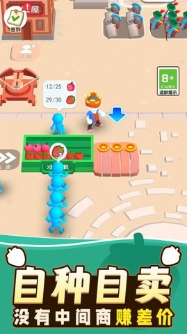 1、游戏开始时,你需要通过伐木、种植等方式来获取资源,如木材、食物和金币等。
