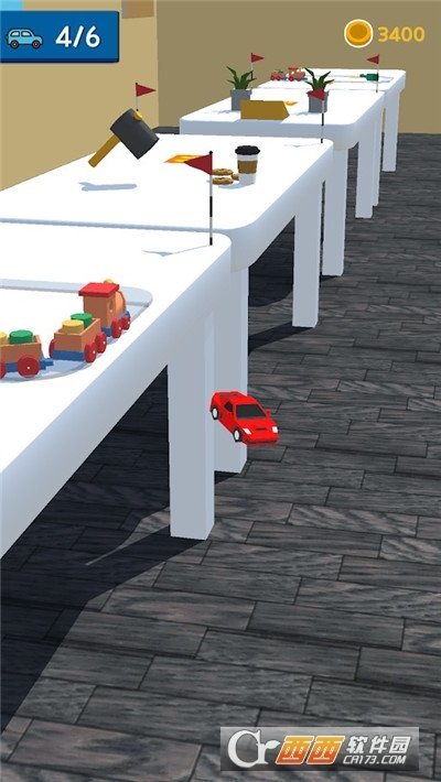 在桌子上控制小汽车向前跑穿越所有的障碍,同时收集更多的金币。